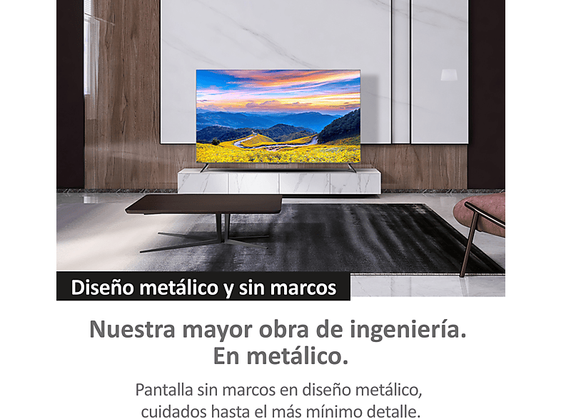 Este Televisor cuenta con los marcos en diseño metálico, cuidando todos los detalles. Un diseño 360º con materiales de gran calidad.
