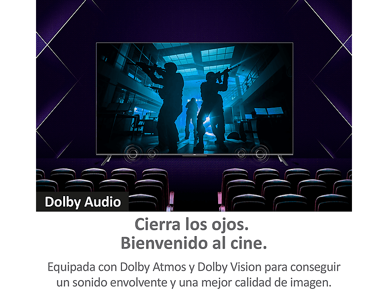 Con la tecnología Dolby conseguirás disfrutar de una experiencia cinematográfica en casa. La unión de su increíble altavoz frontal con tecnología Dolby Audio junto ala tecnología Dolby Visión te permitirá sumergirte en tu programa favorito con una gran calidad de imagen y un sonido claro y envolvente que te aportará un realismo impresionante.