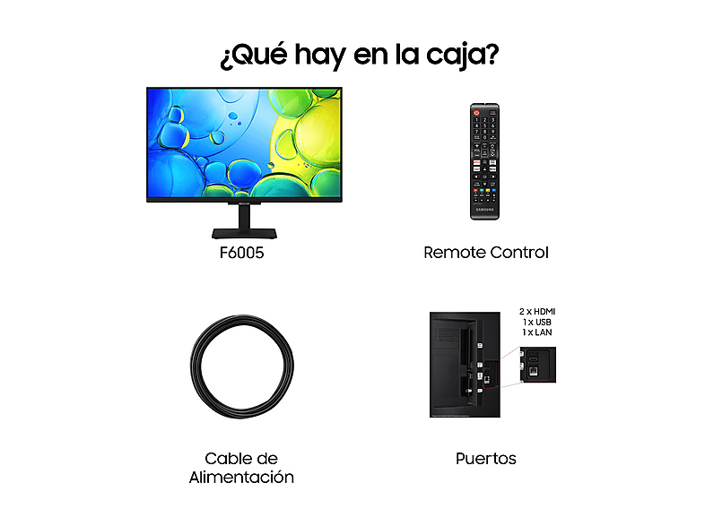 1x Televisor, 1 Mando a distancia, 1x Cable alimentación |