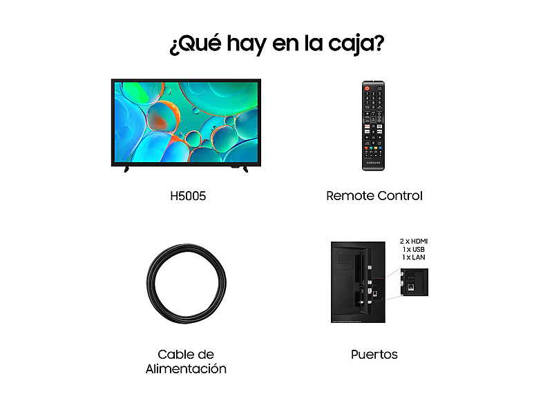 1x Televisor, 1x Mando a distancia, 1x Cable de alimentación, 1x Manual de usuario |