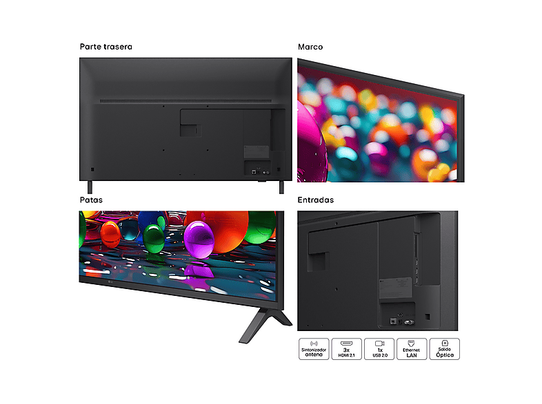 ¡Lleva tu entretenimiento al siguiente nivel con el TV LED 55" LG 55UA75006LA. Imágenes increíbles en 4K con Dynamic Tone Mapping en 2,040 zonas, procesador inteligente 4K α7 Gen8 y sistema webOS 25 que mejora cada año. Disfruta de control por voz, asistente virtual y Magic Remote. Ideal para gamers con VRR 60 Hz, Cloud Gaming, HDR10 Pro y sonido Dolby Digital Plus. ¡Tecnología que se adapta a ti!
