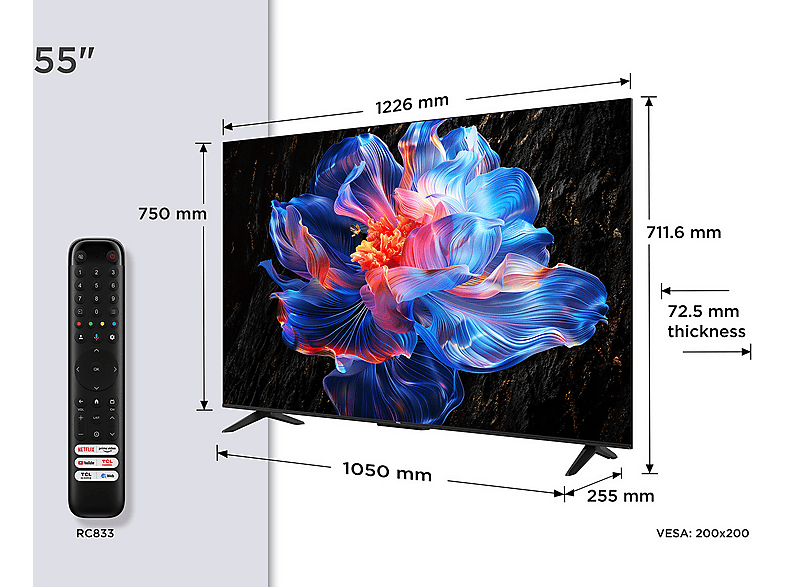 TV LED 55" - TCL 55P6K, UHD 4K, AiPQ, Smart TV, DVB-T2, Smart TV, 60 Hz, Negro