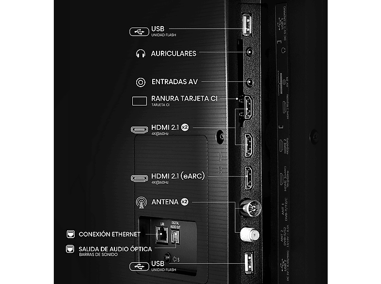 El Hisense A6Q es compatible con Dolby Vision, una tecnología que mejora el contraste, la profundidad de los colores y el brillo, ofreciendo una visualización más cinematográfica y realista. A esto se suma un sistema de audio con Dolby Audio y DTS Virtual:X, que crea una sensación envolvente más rica, con diálogos claros y efectos mejor definidos para una experiencia más inmersiva.