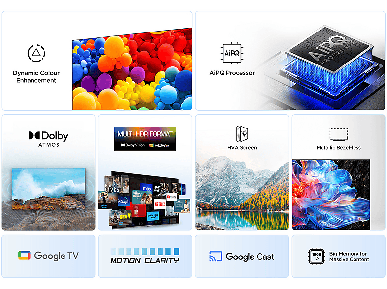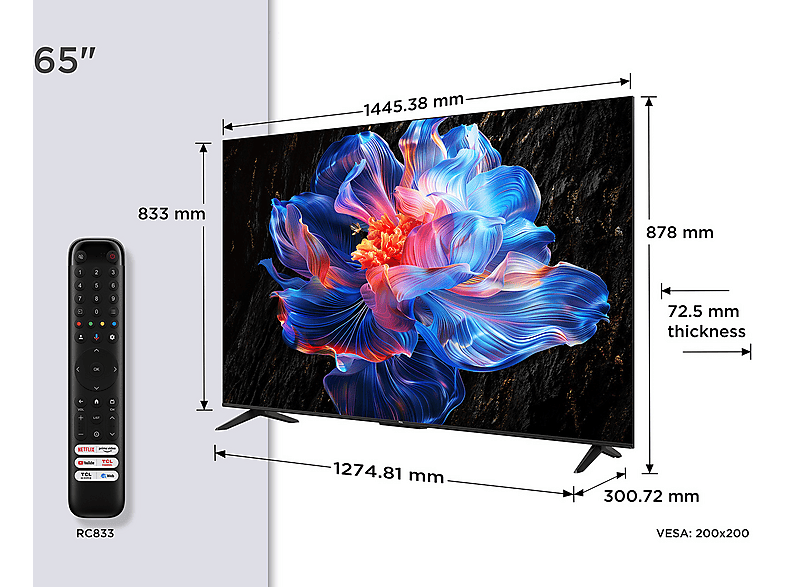 TV LED 65" - TCL 65P6K, UHD 4K, AiPQ, Smart TV, DVB-T2 Smart TV, 60 Hz, Negro