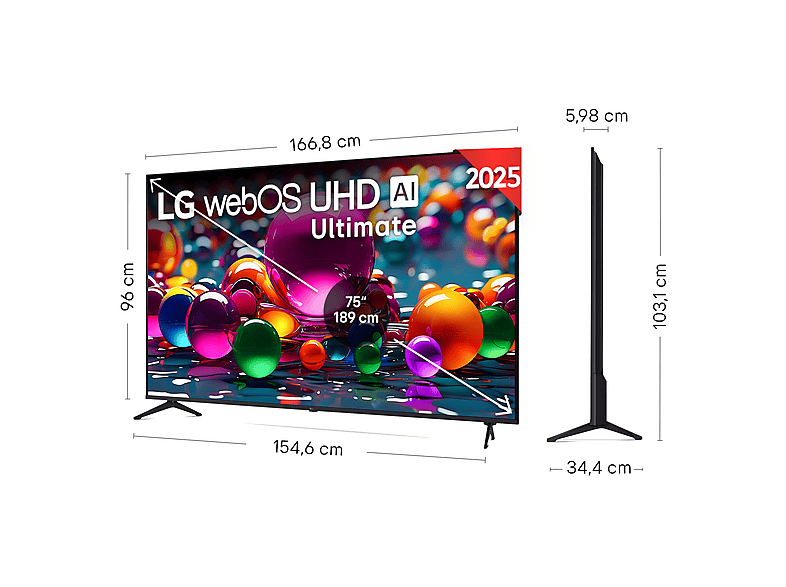 TV LED 75" - LG 75UA75006LA, UHD 4K, Procesador Inteligente α7 AI Processor 4K Gen8, Smart TV, DVB-T2 (H.265), Charcoal Black