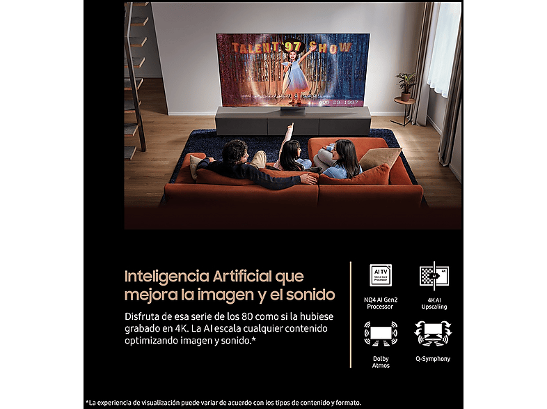 Una increíble resolución 4K en todo lo que puedas ver: series, películas, programas de entretenimiento, deportes… Gracias a la inteligencia artificial que escala cualquier contenido y optimiza la imagen y el sonido, todo hace que puedas disfrutar de una calidad espectacular en 4K.