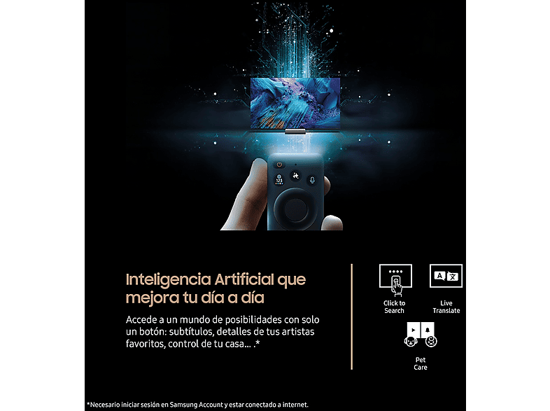 Dolby Atmos, OTS Lite, Q-Symphony, Tipo de altavoz 4CH, Amplificador Voz Activa Pro, Adaptive Sound Pro, Interacción por voz a larga distancia, Funciona con altavoz de IA, Gaming Hub, Multi Device Experience, Multi-View, Apple AirPlay, Daily+, Storage Share, Live Translate, Click to Search, Generative Wallpaper, Karaoke Mic |