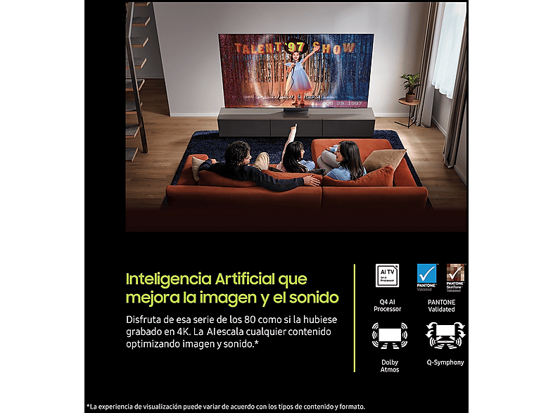 Disfruta de tus series y películas como si las hubieran grabado en 4K, incluso las antiguas. El procesador Q4 con AI ayuda a optimizar tu experiencia: la inteligencia artificial hace un potente escalado a 4K que te ofrece una resolución espectacular.