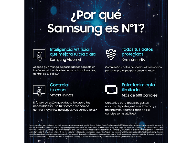 Con Samsung Knox tus datos están completamente protegidos: contraseñas, datos personales e información sensible como datos bancarios. Un plus es poder controlar los dispositivos de tu casa a través del mando de tu TV con SmartThings, y por otro lado, también puedes ahorrar fácilmente energía y tiempo con AI Energy Mode.