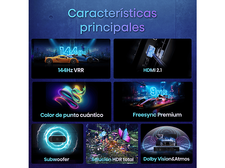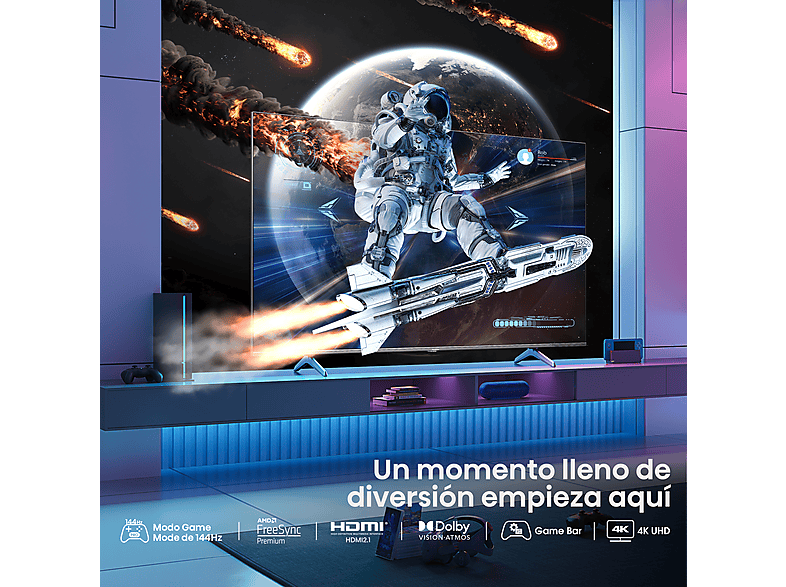 Todas las características gaming que necesitas para tener la experiencia de juego óptima con la TV QLED 65E7KQ Pro de Hisense. Con 144Hz VRR conseguirás una experiencia de juego suave y enfocada.