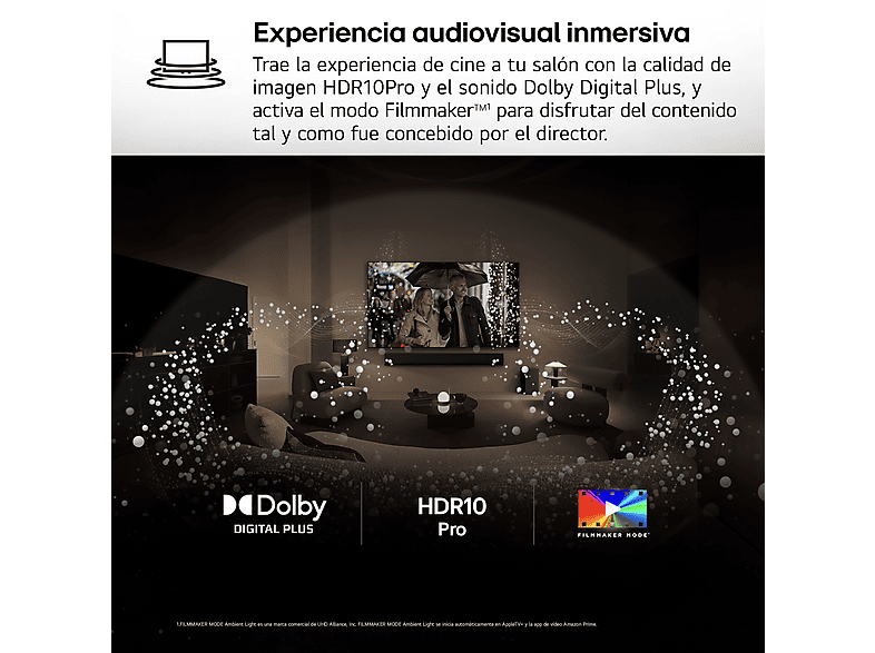 El Smart TV perfecto para gaming e ideal para cualquier contenido: disfruta la experiencia gaming con fluidez VRR (60 Hz), y Cloud Gaming; vive la película tal y como la imaginó el director con el modo Filmmaker y con la calidad de cine HDR10 Pro y Dolby Digital Plus; y no te pierdas nada con las alertas deportivas.